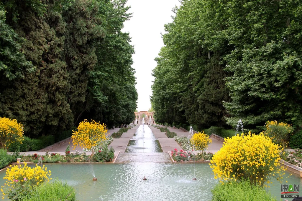สวนแห่งนี้เป็นตัวอย่างที่ดีของสวนเปอร์เซียที่ใช้ประโยชน์จากสภาพอากาศตามธรรมชาติที่เหมาะสม น้ำพุสามารถมองเห็นได้เหนือผืนดินที่ไหลจากชั้นบนสุดลงมายังชั้นล่างสุดในรูปแบบน้ำตก ดูสวยงามมากและได้สวยงามยิ่งขึ้นจากที่แวดล้อมด้วยธรรมชาติของสถานที่ การใช้สภาพอากาศตามธรรมชาติของพื้นที่อย่างชาญฉลาดสามารถเห็นได้ในสวนแห่งนี้ ซึ่งเป็นลักษณะหลักของสวนเปอร์เซียทุกแห่ง ด้านหน้าบริเวณทางเข้าสวนมีลักษณะคล้ายโครงสร้างเชิงเส้นตรงบริเวณสวน และตัวอาคาร 2 ชั้น ชั้นบนมีห้องสำหรับอยู่อาศัยและจัดเลี้ยง นอกจากโครงสร้างทางเข้าแล้ว สวนแห่งนี้ยังมีคฤหาสน์ของกษัตริย์ ซึ่งได้กลายมาเป็นร้านอาหารในขณะนี้และดำเนินการโดยภาคเอกชน ภายในสวนมีไม้ผลนานาชนิด ตลอดจนบ่อน้ำและน้ำพุที่สร้างขึ้นในบริเวณริมน้ำอันสง่างาม